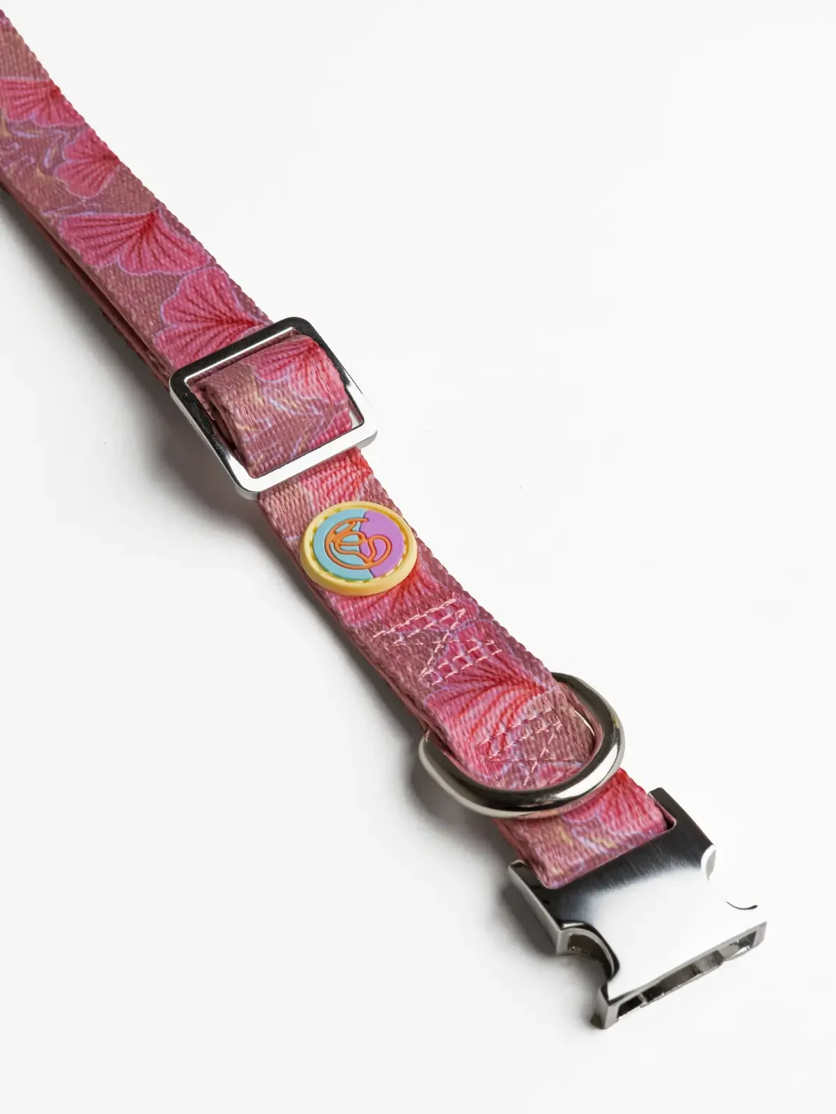 The Sienne Glow dog collar reflects the dynamic strength and richness of the earth. With its warm palette of sienna and amber tones, it brings a refined yet spirited touch to your dog’s daily look.